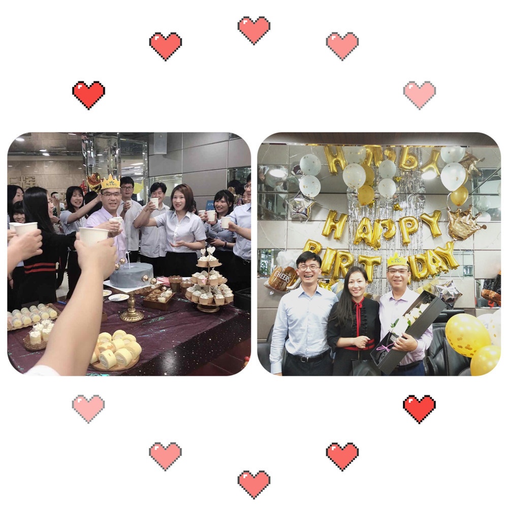 “祝您生日快樂、祝您生日快樂......”伴隨著生日歌,燈光熄滅、蠟燭點燃,壽星朱總戴著生日帽,雙手合十,默默許下了自己的愿望。在輕松、歡快的氣氛中,伙伴們共同分享壽星給大家?guī)淼纳障矏?,感受著家一樣的溫馨?/p>